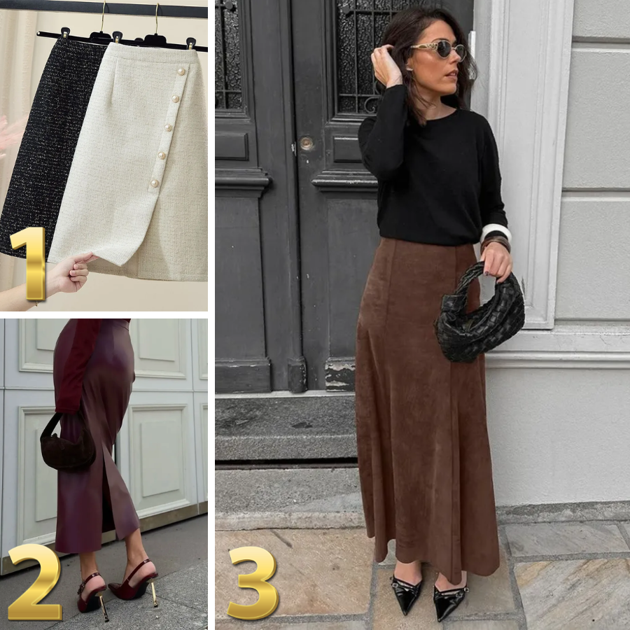 3. Бордовая юбка-карандаш под кожу от Koton. Напомню, что такой глубокий цвет — это прямой билет в тренды зимы 2025/26. Модель очень комплиментарная для фигуры — высокая посадка выделяет талию, а прямой крой стройнит. И что важно, сзади есть разрез, так что будет удобно.