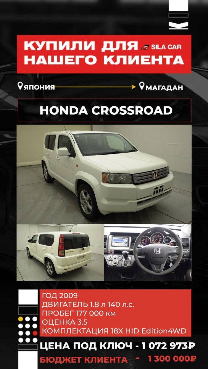 🔥 Никаких скрытых комиссий ❗️Работаем строго по договору ┏ Реально честная комиссия: ┣ 50 000₽ на авто до 1 млн ₽ ┣ От 1 до 3 млн. ₽ - 70.000₽ ┣ От 3 до 5 млн. ₽ - 100.000₽ ┗ Свыше 5 млн ₽ - 2% от итоговой стоимости САМЫЕ ЧЕСТНЫЕ ЦЕНЫ НА РЫНКЕ⬇️ Цена "на кнопке" ¥483 000 р.260 868,30 Комиссия за дорогую покупку ¥0 р.0,00 Расходы по Японии ¥60 000 р.32 406,00 Фрахт ¥80 000 р.43 208,00 Итого стоимость по инвойсу ¥623 000 336 482,30 ₽ Ставка таможенного платежа р.587 790,00 Утилизационный сбор* р.5 200,00 Брокерские услуги, СВХ, погрузо-разгрузочные работы, прохождение лаборатории р.60 000,00 Приёмка и забор автомобиля с СВХ, доставка до лаборатории, доставка до стоянки р.10 000,00 Комиссия р.70 000,00 НДС на комиссию 5% 3 500,00 ₽ Итого во Владивостоке: 1 072 973₽ 🔴Купил менеджер Михаил 📞 +7(908)979-36-98 🔵 @SilaCarMikhail Для расчета стоимости авто жмите сюда и пишите нашим менеджерам💪 Или звоните: 88007002375 А для тех, кого интересует автокред
