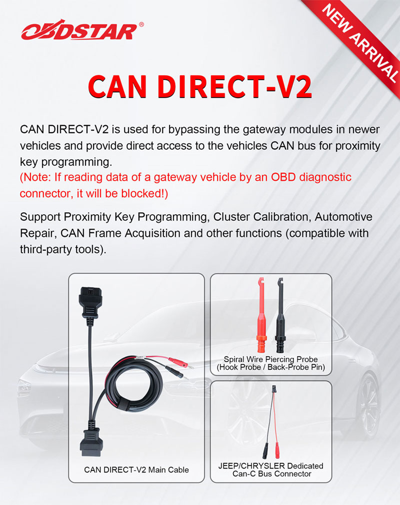 Откройте для себя скрытый доступ: представляем OBDSTAR CAN DIRECT-V2 — вашу прямую связь с «мозгом» автомобиля . Устали от модулей-шлюзов, блокирующих доступ к диагностике? Разочарованы OBD-разъемами, которые просто не позволяют получить доступ? Забудьте о препятствиях и приветствуйте прямое управление с совершенно новым CAN DIRECT-V2 — идеальным инструментом для специалистов автомобильной отрасли, которым необходим беспрепятственный и полный доступ к системе CAN-шины автомобиля . Обойдите шлюз. Получите прямой доступ. Современные автомобили стали умнее — и имеют более ограниченные возможности. При попытке считывания данных через порт OBD на более новых моделях критически важные функции часто блокируются модулем шлюза. Теперь это в прошлом. Комплект OBDSTAR CAN DIRECT-V2 разработан для полного обхода шлюза, обеспечивая прямую и беспрепятственную связь с CAN-сетью автомобиля.Независимо от того, программируете ли вы бесконтактные ключи, калибруете приборные панели, выполняете сложн