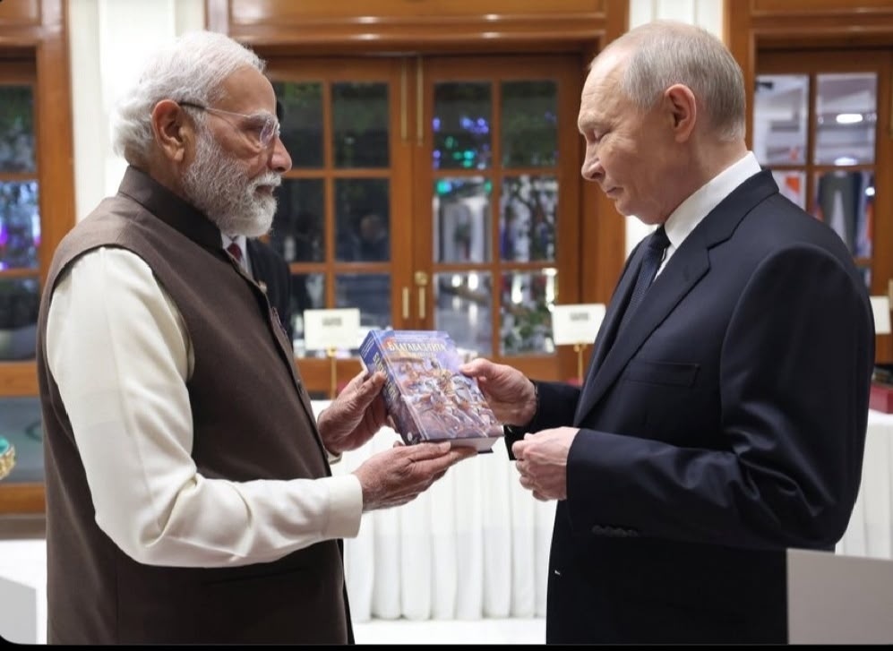 Думаю, Нарендра Моди сделал подарок российскому коллеге в связи с тем, что 1 декабря отмечался праздник Гита-джаянти – День явления «Бхагавад-гиты» (3138 г. до н. э.).