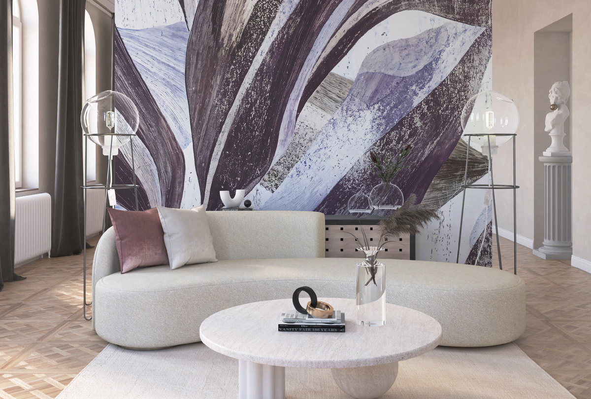 - По фактуре/шкале — матовая тонкая фреска vs бархатный диван; крупный мотив vs мелкий орнамент.