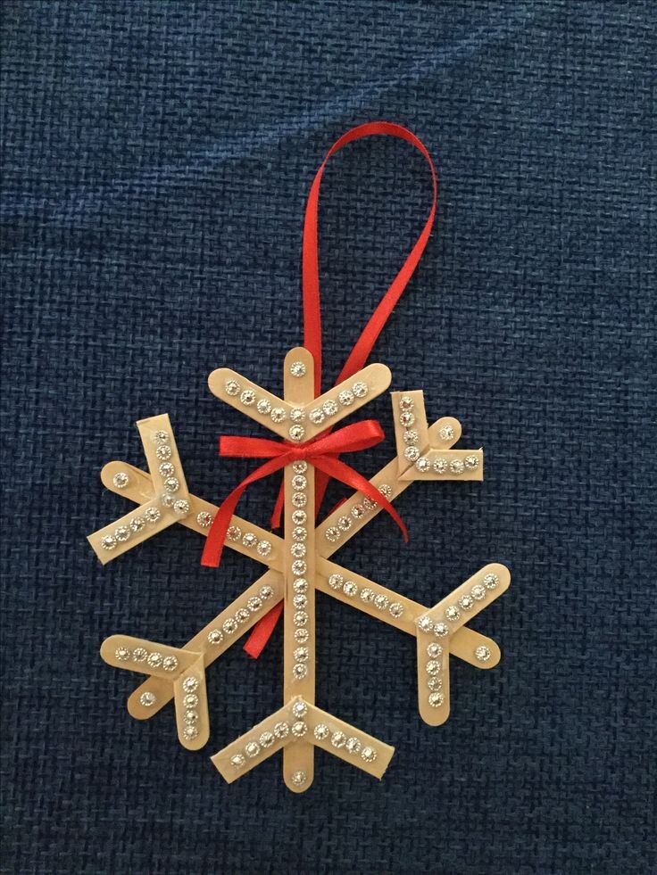 Простой способ сделать своими руками ёлочные украшения – это использовать обычные палочки от мороженого.