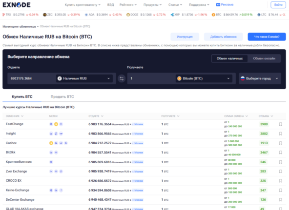 Первый и ключевой этап — понять, где купить биткоин в России за рубли. Для этого используется сервис мониторинга Exnode, который позволяет сравнить доступные обменники по городу, формату работы и репутации.