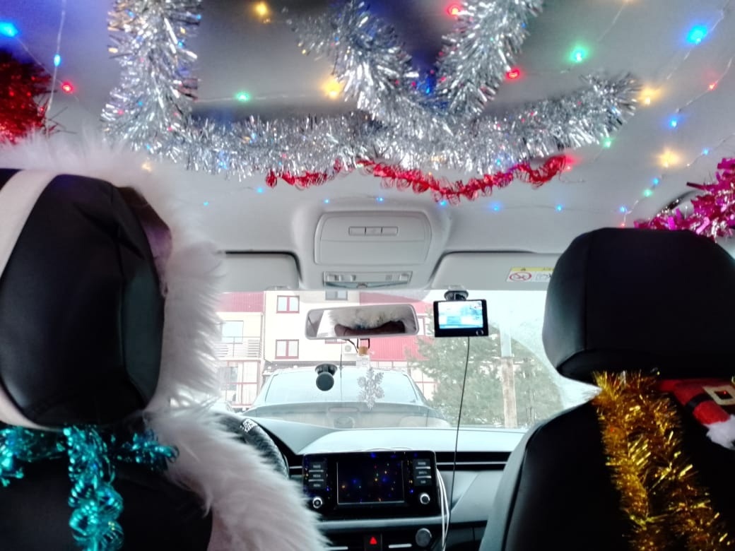 Пассажиры спрашивают, где Дед Мороз. Женщина украсила машину и таксует в костюме Снегурочки