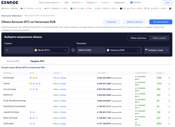 Отдельного внимания заслуживает использование мониторинга Exnode. Этот сервис помогает заранее понять, где можно продать биткоин за рубли, сравнить предложения обменников и выбрать оптимальный вариант без лишних затрат времени. В условиях постоянно меняющегося рынка Exnode становится удобным инструментом для первичной оценки и безопасного старта.
