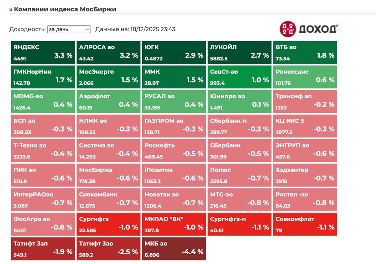 В четверг индекс мосбиржи вырос на 0,2% до 2768 пунктов. Юань упал на 0,42% до 11,352. Нефть упала на 1,5% до $59,8 Новостная троица 1.Ставка В 13:30 ЦБ опубликует новую ставку, а в 17:00 проведут пресс-конференцию ЦБ. Хотя есть как позитивные данные в виде инфляции и роста спредов в облигациях, так и негативные как рост инфляционные ожиданий и разгон курса перед ставкой. ЦБ последние 2 года консервативный - посмотрим что будет в этот раз. Скорее 50-100 базисных пунктов уже в цене, и может быть локальная коррекция, но сезонность остается за рост рынка и геополитика все может быстро поменять. 2.Речь Путина Путин сегодня проведет прямую линию в 12 часов дня - традиционно здесь бывают позитивные новости. Люди задали 2 миллиона вопросов. Будут про экономику, политику - на этом могут быть громкие заголовки. 3.Геополитика Вчера не смогли забрать заблокированные резервы, пока без новостей - посмотрим что будет сегодня. Обсуждения продолжат. Украинский бюджет за 3 года заработал 150 м