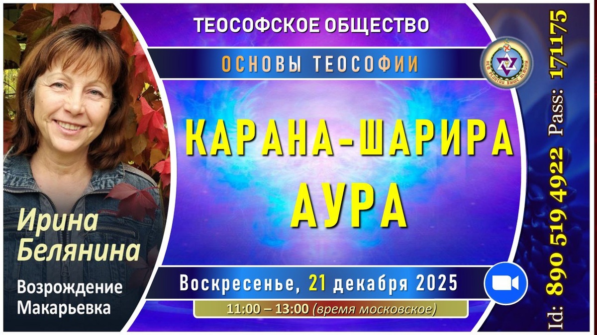 🎈🎈🎈В это воскресенье, 21 декабря 2025 года, в рамках проекта «Основы теософии» состоится беседа на тему "КАРАНА-ШАРИРА АУРА