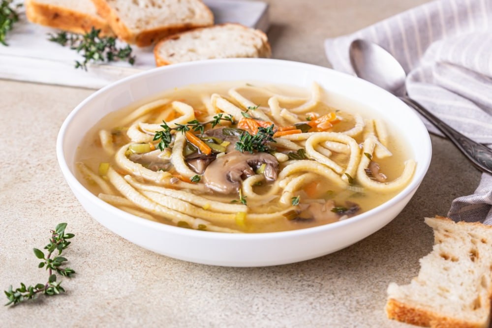 Безумно ароматный, очень вкусный и легкий суп, который идеально подойдет для любого обеда. Его можно приготовить с любыми грибами: свежими, замороженными или сухими. 📋 Ингредиенты (на 6 порций): * Грибы (шампиньоны, лучше королевские) – 250 г * Лук-порей (или репчатый) – 1 шт. * Морковь – 1 шт. (небольшая) * Лапша – 60 г * Бульон (овощной, куриный или грибной) – 1,5 л * Растительное масло – 1 ст.л. 👩🍳 Приготовление: 1. Подготовьте грибы. Свежие промойте и нарежьте. Сухие (50 г) замочите на пару часов в 1 л воды, затем процедите настой, а грибы промойте. Замороженные можно добавить без разморозки. 2. Нарежьте овощи. Лук-порей хорошо промойте, белую часть нарежьте полукольцами. Морковь очистите и нарежьте тонкой соломкой. Грибы нарежьте кусочками. 3. Обжарьте. В кастрюле с толстым дном разогрейте масло. Обжарьте лук с морковью 1 минуту, добавьте грибы и жарьте еще 2-3 минуты. 4. Сварите суп. Влейте в кастрюлю бульон, доведите до кипения. Уменьшите огонь и варите 10