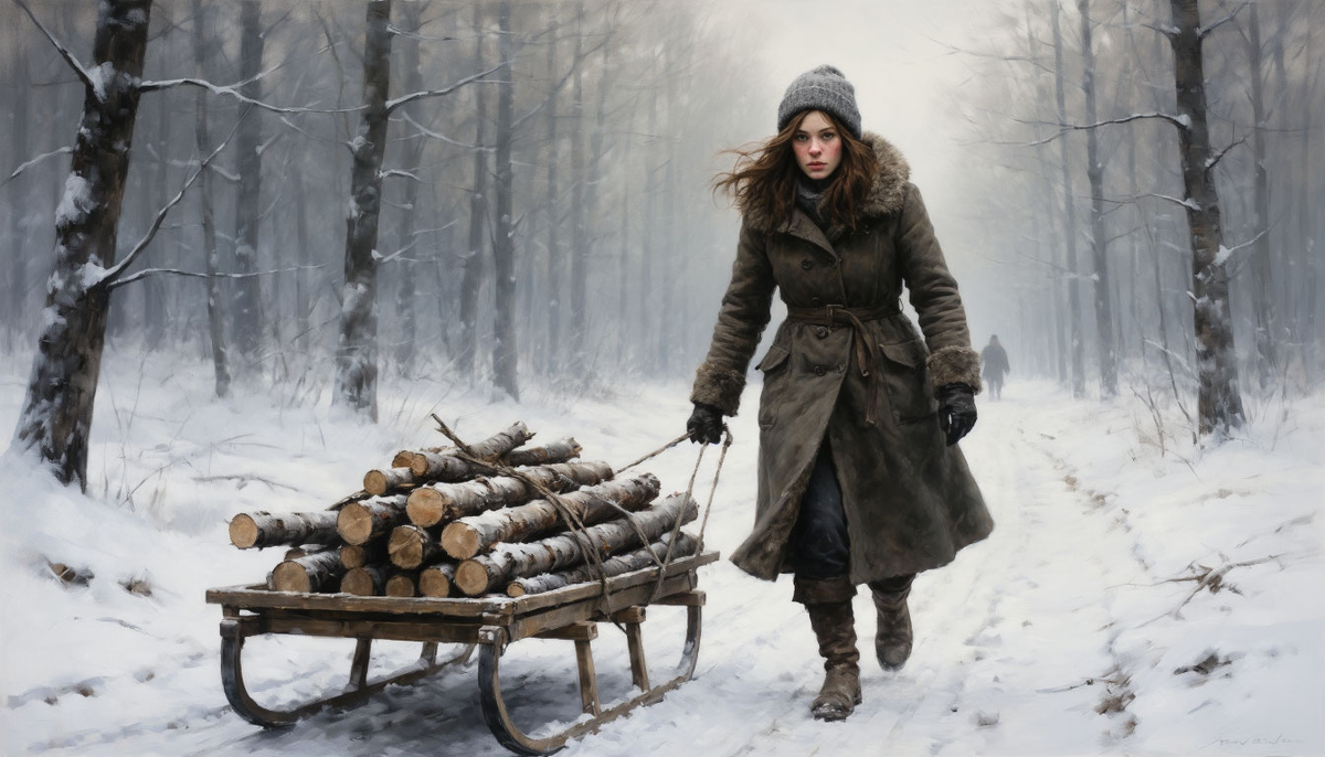 Солнце ушло за тучи, и в лесу резко похолодало. Катя подняла воротник потрёпанного полушубка и резко потянула сани, нагруженные сухими ветками. Верёвка туго натянулась, а потом внезапно обвисла, и девушка едва не упала на снег.