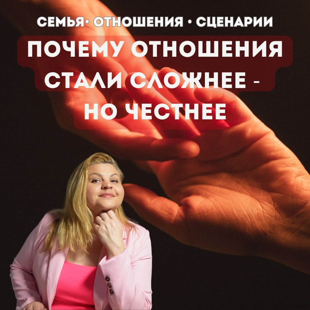 ✔️ Если тебе кажется, что строить отношения стало труднее - тебе не кажется. В 2025 году рушатся старые сценарии любви: где можно было терпеть, подстраиваться, спасать, молчать и «как-нибудь сложится». Теперь - не складывается. Потому что☝️ 👉 женщина больше не готова жертвовать собой ради статуса «в отношениях» 👉 мужчина чувствует фальшь быстрее, чем раньше 👉 близость требует зрелости, а не ролей 👉 отношения без внутренней опоры долго не держатся Сегодня уже не работает формула: «если я буду хорошей, меня полюбят». Работает другая: «когда я целостна - со мной хотят быть». И именно поэтому: ☝️ кто-то остаётся один дольше, чем хотелось бы 👌 кто-то выходит из привычных, но пустых союзов 👌 кто-то впервые выбирает себя Это не кризис любви. Это переход на другой уровень. Если ты сейчас в паузе возможно, жизнь готовит тебя не к «каким-нибудь» отношениям, а к настоящим. 💬 Напиши в комментариях: «чувствую» если откликается