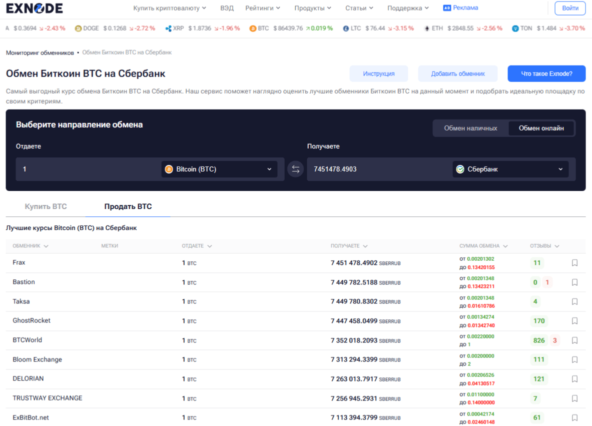 Среди инструментов для безопасного обмена важную роль играет мониторинг обменников. Например, сервис Exnode собирает проверенные площадки, сравнивает актуальные курсы и показывает, где обменять биткоин на рубли на карту максимально выгодно и безопасно. С помощью такого мониторинга можно выбрать надежный обменник с реальными отзывами, достаточным резервом и поддержкой всех популярных банковских карт РФ.