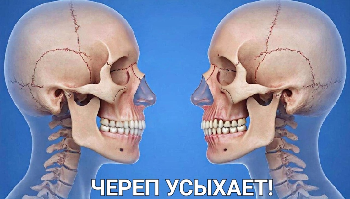 С возрастом происходит процесс резорбции - костная ткань рассасывается. Особенно сильно страдает Верхняя челюсть (область под носом, "собачья ямка").