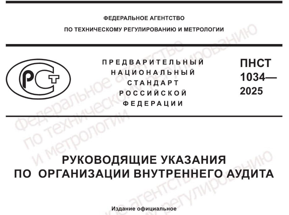 Руководящие указания по организации внутреннего аудита https://protect.gost.ru/v.aspx?control=8&baseC=6&page=3&month=11&year=2025&search=&RegNum=1&DocOnPageCount=15&id=257746&pageK=AD7261E1-1D43-44C6-B6E2-7746981D4067 Настоящий стандарт содержит указания по организации внутреннего аудита в любых организациях, независимо от их формы собственности, вида деятельности, размера, структуры, сектора и отрасли экономики. Настоящий стандарт предназначен для применения внутренними аудиторами, которые являются работниками организации или работниками внешнего поставщика услуг внутреннего аудита Будет полезен при обучении внутренних аудиторов, составлении программы внутреннего аудита.