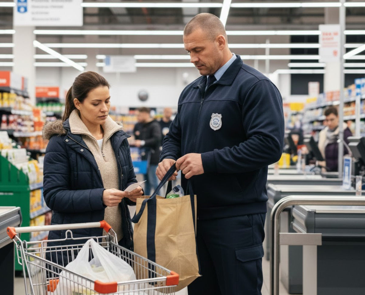 Ситуация знакомая многим: вы оплатили покупки, идёте к выходу — и охранник просит показать сумку или рюкзак. Формулировки бывают разные: «проверка», «секундочку», «у нас правила», «сработала рамка». Возникает логичный вопрос: обязан ли покупатель подчиняться и где проходит граница законных требований? Разберёмся спокойно и по фактам. Охранник в магазине — не сотрудник полиции и не представитель государственной власти. Даже если он работает в форме и при рации, его полномочия ограничены рамками частной охранной деятельности и правилами магазина. Это означает важную вещь: