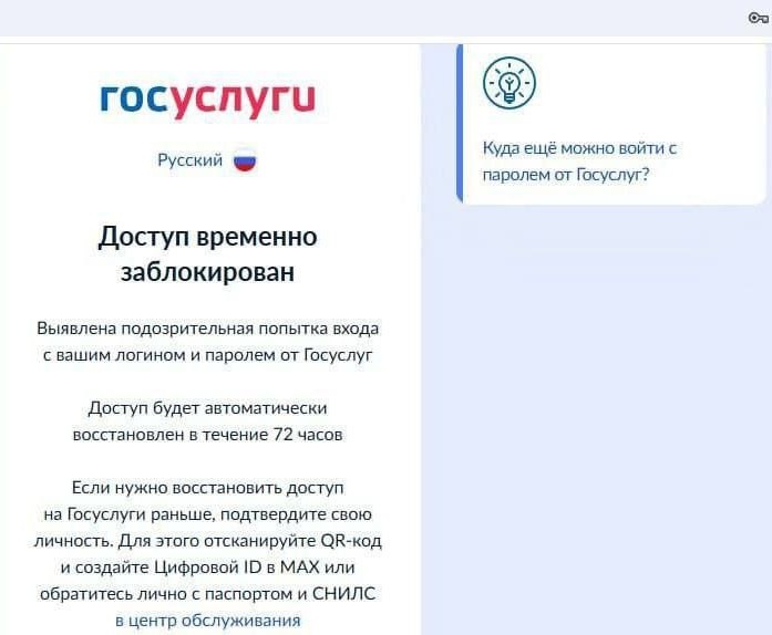 При подозрении на взлом портал блокирует доступ к разделам «Доходы и налоги», «Работа и пенсия», «Льготы и выплаты», сообщили в Минцифры. Также нельзя авторизоваться на сайтах микрофинансовых организаций и в приложении «Госключ». Ранее в МВД предупреждали: заходить на портал с включённым VPN небезопасно. Через трое суток доступ восстановится автоматически. Если нужно быстрее — можно подтвердить личность в МФЦ с паспортом и СНИЛС или создать «Цифровой ID» в мессенджере Max. Раньше дистанционного способа разблокировки не было. 💿Мы в MAX — подпишись! 🔴Подписаться на Севастополь в курсе