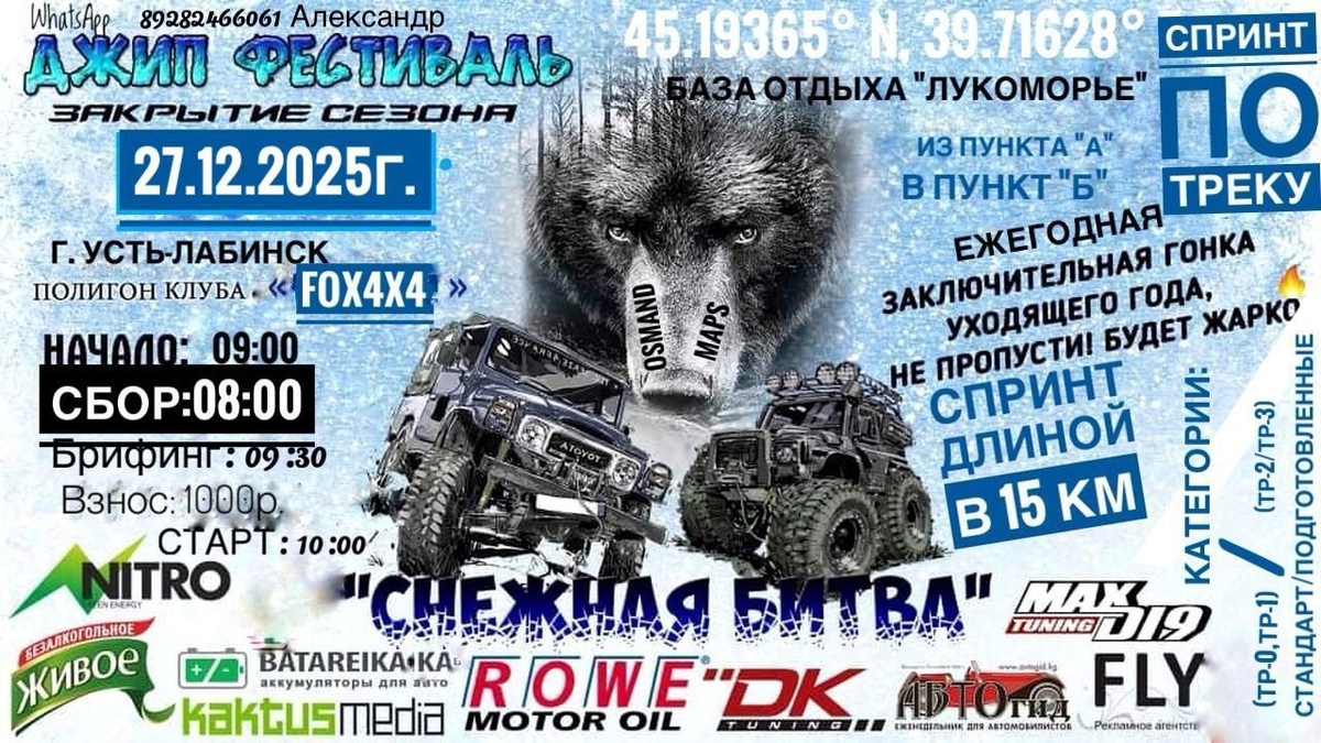 Разбираем анонс зимнего фестиваля «Линейный спринт» под Усть-Лабинском — от технических требований до философии большого джиперского корпоратива. Для человека со стороны это звучит как безумие: проехать больше тысячи километров от Вольска, чтобы потом гонять по мокрому декабрьскому лесу на своём же автомобиле. Для джипера — это святое: предновогодний «Линейный спринт», традиционный выезд на юга, где закрывают сезон не банкетом в кафе, а выхлопами, салютом и дымом от костра. Что это за зверь?