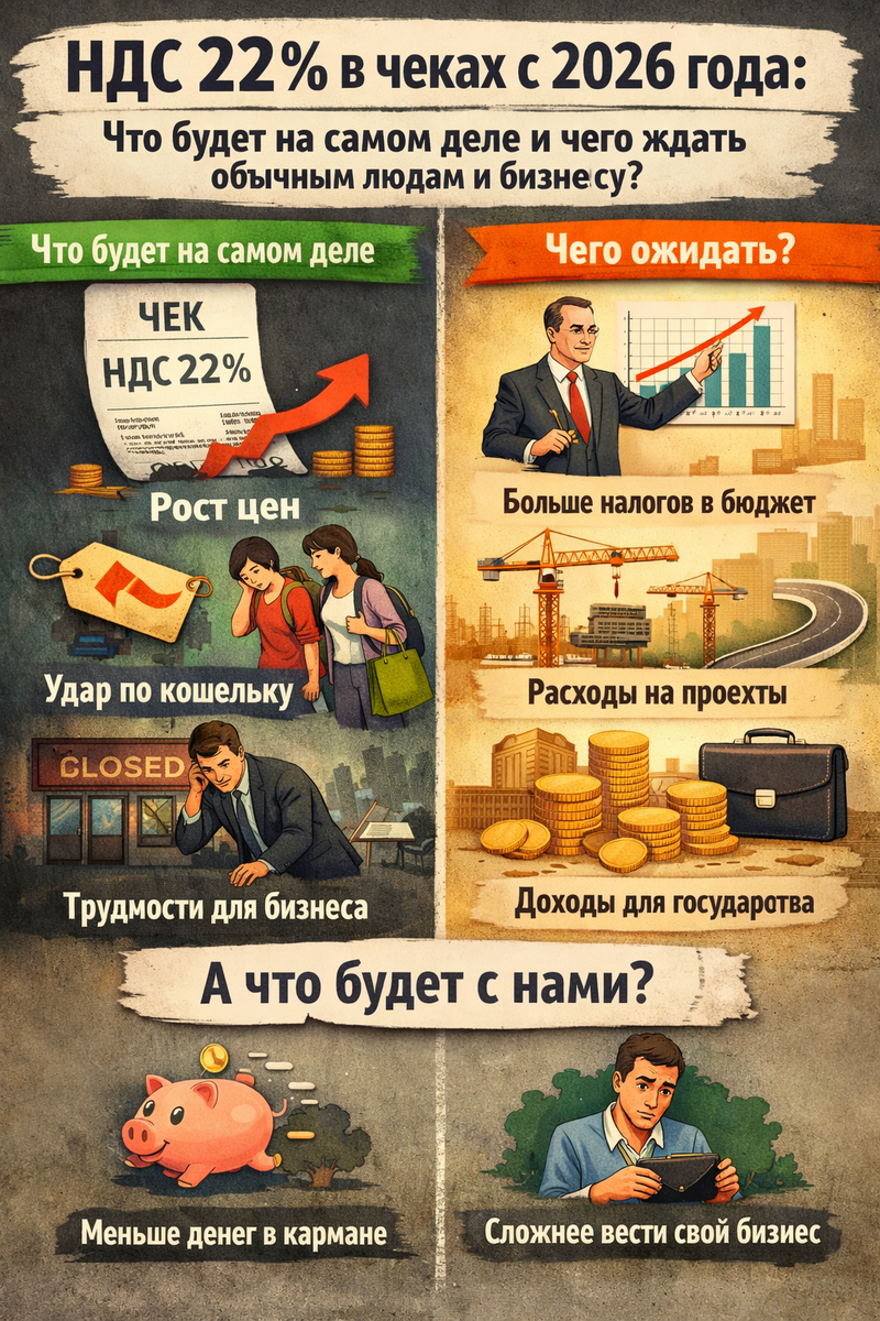 С 1 января 2026 года в России меняется ставка НДС — с 20% до 22%. Об этом уже достаточно говорят в новостях, но гораздо меньше обсуждают один очень важный и практичный момент: как это отразится в кассовых чеках, что делать бизнесу, и какие риски для обычных покупателей и для предпринимателей.