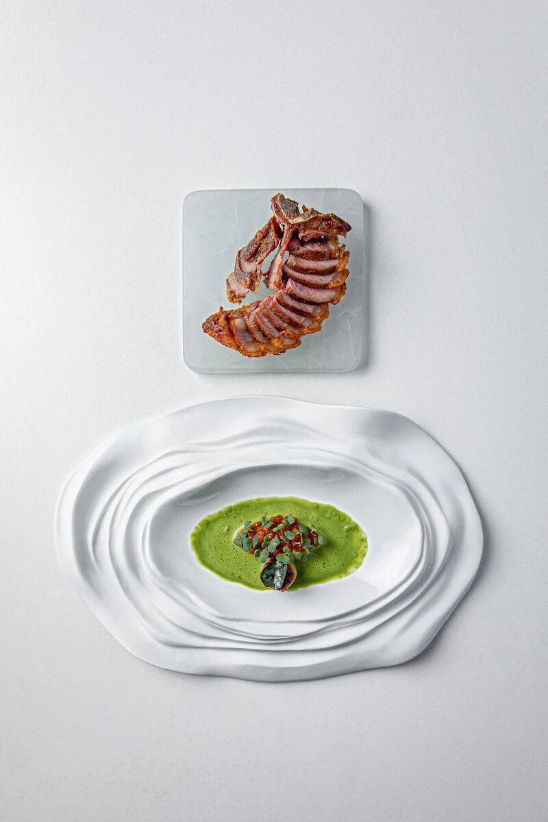 Каре ягненка романовской породы. 🏰 Тутаев — город с тремя именами и тремя судьбами. Романов, Борисоглебск, Тутаев — самобытное место на Волге, раскинувшееся на двух берегах, не соединённых мостом. Здесь каждая эпоха, начиная с XIII века, оставила свой след: от древнерусского города и купеческой слободы до индустриального моногорода XX века. 📜 Этот край стал колыбелью романовских традиций — здесь появились баранки и гвозди, суда-«романовки», знаменитый романовский лук и уникальная порода овец, ценимая за необыкновенную нежность и сочность мяса. 🐑 Именно этой уникальной породе, веками выводившейся на здешних землях, мы обязаны особым вкусом. Мясо романовских овец — нежное, сочное, с идеальным балансом. 🥩 Мы подаём его как изысканный стейк тибон, дополняя луковым мармеладом, приготовленным из знаменитого романовского лука. Аккорд свежей аджики и лёгкий сок петрушки завершают блюдо, в котором чувствуется дух места и наследие вкуса. 🎻 История иногда складывается в удивительную сим