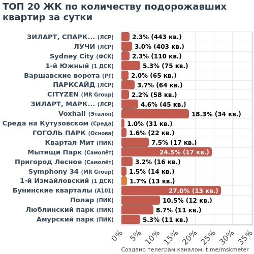 ) 🏆 ЛИДЕРЫ ПО РОСТУ: ПИК 27 ЖК 164кв +4,7% Самолёт 16 ЖК 83кв +9,8% ЛСР 7 ЖК 1008кв +3,1% 1 ДСК 5 ЖК 112кв +4,3% A101 5 ЖК 18кв +14,5% MR Group 5 ЖК 77кв +3,5% Основа 3 ЖК 24кв +17,5% FORMA 3 ЖК 100кв +0,7% Аквилон 3 ЖК 3кв +0,0% ФСК 3 ЖК 131кв +2,0% 👇 Полная статистика: 📲 В Telegram — быстро посмотреть 🌐 На MskMeter.ru — графики цен и скидки за любой период