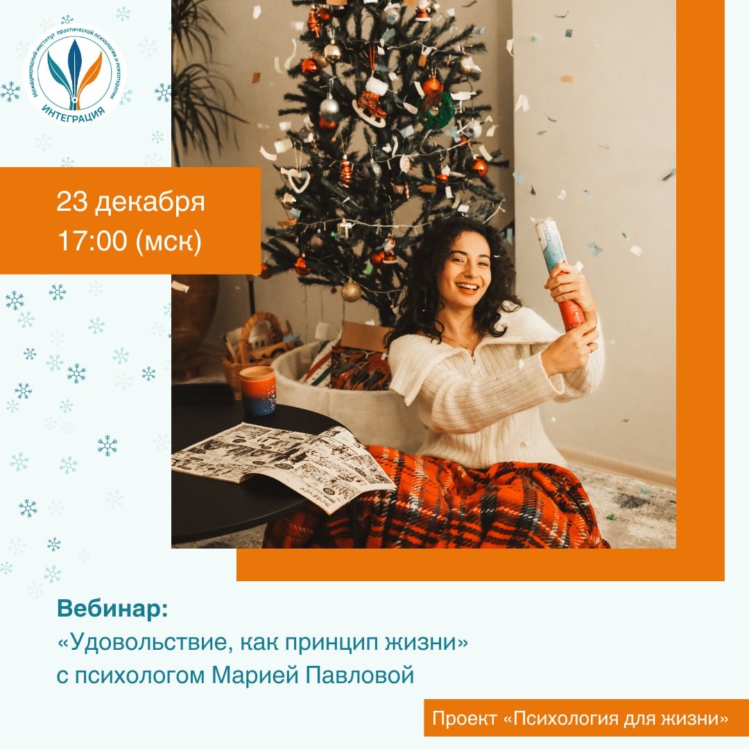 Еще Александр Лоуэн подчеркивал, что способность испытывать удовольствие является фундаментальным аспектом здоровья и благополучия, а подавление естественных телесных ощущений и желаний ведет к эмоциональным и физическим проблемам. Он считал, что жизнь должна приносить радость, а не быть постоянной борьбой. Без удовольствия жизнь человека становится похожей на гонку и борьбу между «хочу» и надо». Тратя на это много времени и энергии, человек забывает о своих чувствах, желаниях и эмоциях, нацеливая свою жизнь лишь только на процессы выживания. Но разве о такой жизни мы мечтали? Получение удовольствия – это безусловный процесс, такой же, как и любовь. Чем больше мы обуславливаем любовь, радость и удовольствие, тем меньше чувствуем их. 💻 На вебинаре На вебинаре «Удовольствие как принцип жизни» с психологом Марией Павловой мы сможем: 🔸 разобраться, что такое удовольствие и как оно формируется; 🔸 узнать о влиянии удовольствия на нашу жизнь; 🔸 понять критерии своего удовольствия 🔸 о