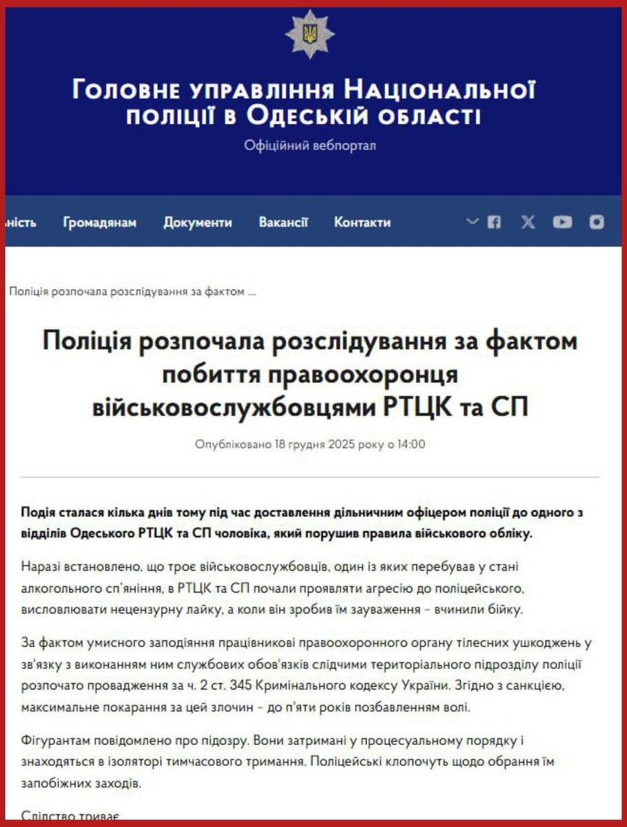 Полиция сообщает, что офицера полиции избили трое работников ТЦК. Один из них был пьян в это время. ТЦКшников задержали, держат их в ИВС, уже составлено уголовное дело и выданы подозрения. Прекрасная новость. Жаль только, обошлось без потерь. Подпишись на Телеграм Александр Семченко
