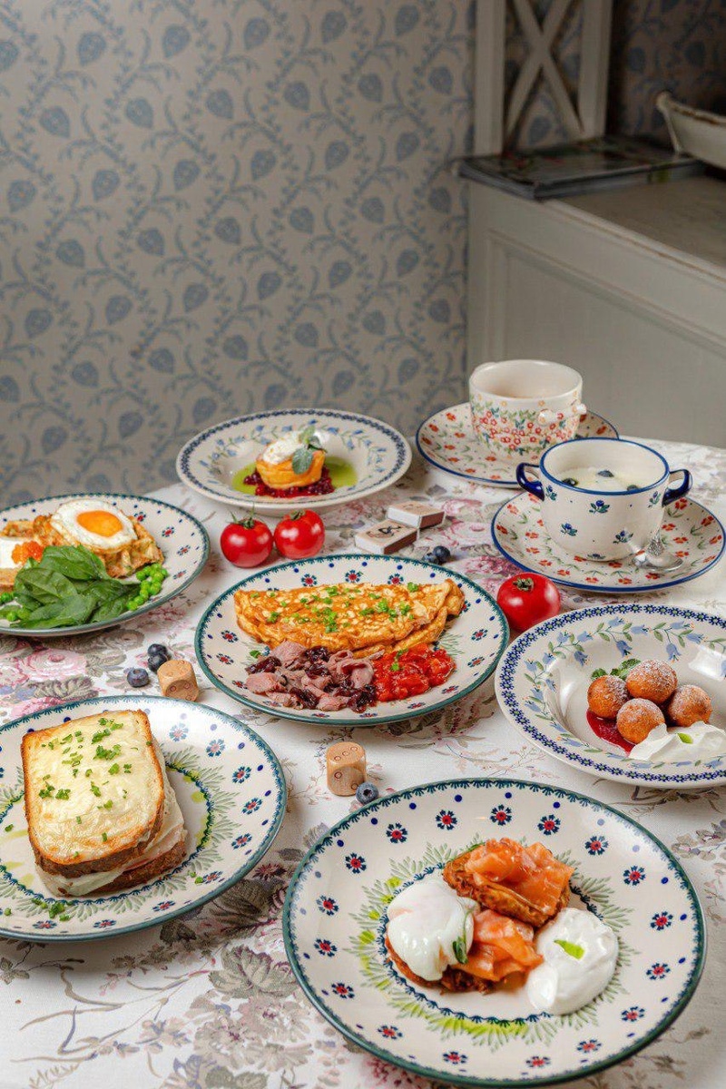 Бутер с докторской, манка с пломбиром, вафли из кабачка с красной икрой и глазуньей, омлет с ростбифом и лечо, творожная запеканка с моченой