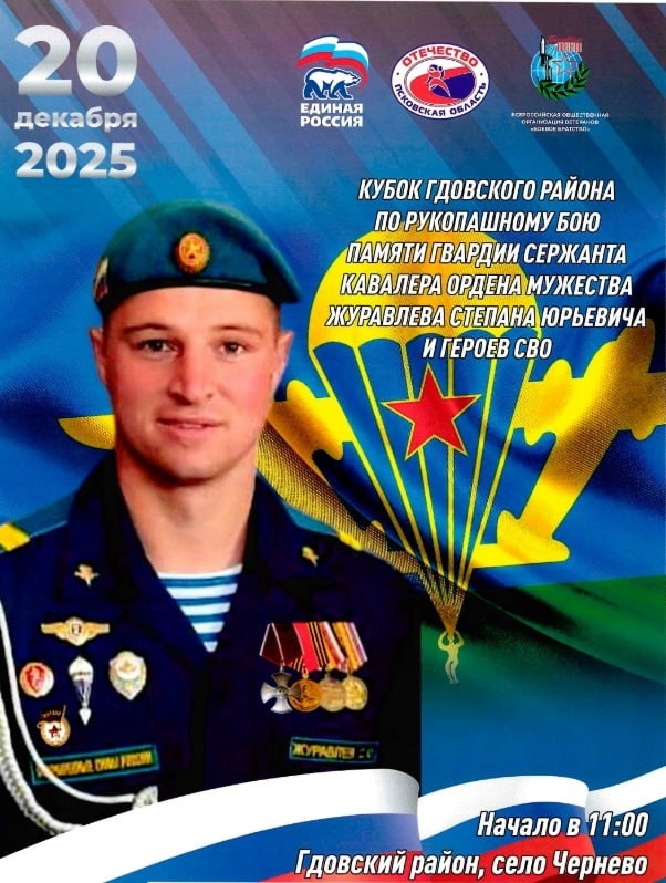 Кубок Гдовского района по рукопашному бою памяти кавалера ордена Мужества, гвардии сержанта Степана Журавлева и героев СВО пройдет в селе