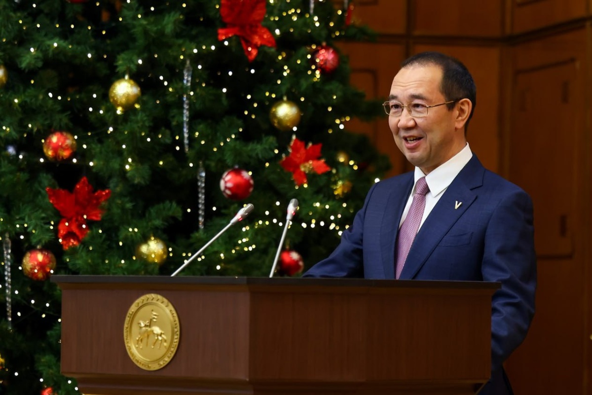 В преддверии Нового года глава Якутии Айсен Николаев провел традиционную церемонию вручения государственных наград РФ и Якутии. Награды получили более 40 жителей региона, отличившихся в различных сферах: образовании, медицине, строительстве, культуре, науке и социальной работе. Айсен Николаев по традиции поблагодарил награжденных за их вклад в развитие республики. Подробнее читайте по ссылке 🖥 Фото: Андрей Сорокин/ЯСИА yk24.ru в 📲 MAX | 💬 Telegram | 💙 ВК | 📺 VK Видео