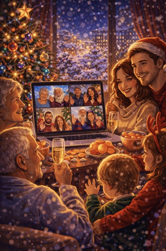 Экран делился на квадратики: разные комнаты, разные города, разные ёлки — но одно настроение.