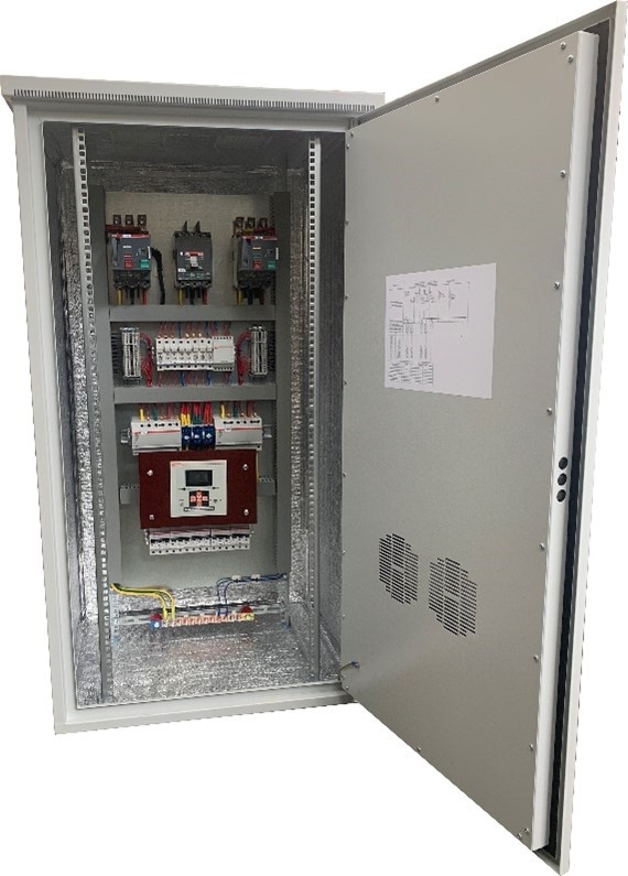 - Два независимых ввода: Шкаф получает питание от двух разных источников. Чаще всего это две независимые фидерные линии от распределительной сети. В качестве резерва также может использоваться компактная дизель-генераторная установка (ДГУ), автоматически запускаемая при аварии.