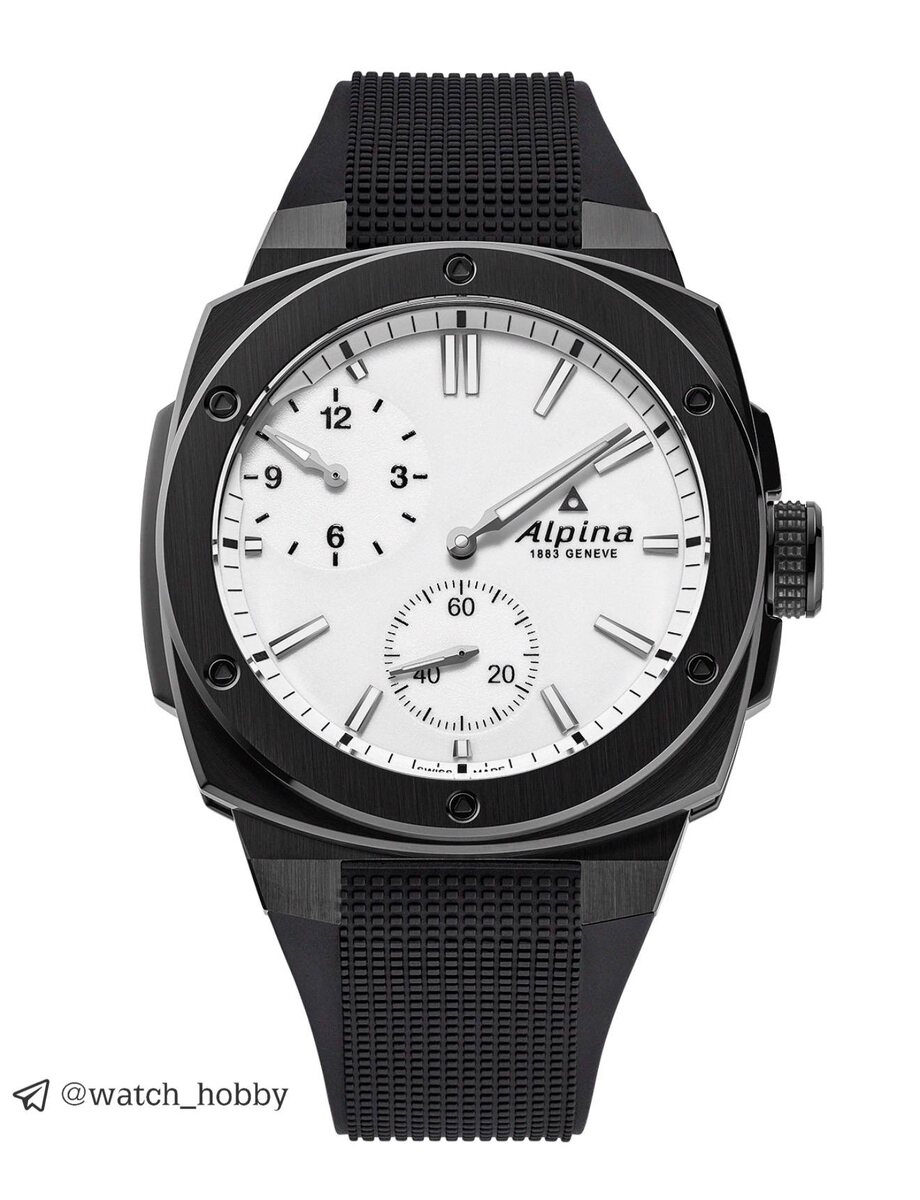 ❄️ Великолепный контраст - черный корпус и белый циферблат. Но самое интересное происходит в темноте. Что с характеристиками: - Корпус из стали - Ремешок из резины - Циферблат, горящий в темноте - Размер корпуса: 41 х 42.5 мм - Высота корпуса: 12 мм - Сатиновая и зеркальная полировка - Сапфировое стекло - Водозащита 200 метров - Автоматический калибр Alpina AL-650 (Sellita SW461) с запасом хода в 38 часов На белом циферблате функции часов, минут и секунд разделены. В положении «6 часов» находится малая секундная стрелка, на «10 часах» - часовая. В темное время суток читаемость не ухудшится благодаря люминесцентному покрытию. Эти два циферблата покрыты контрастным голубым люмом, в то время как минутная стрелка, индексы и весь основной циферблат - зеленым. Черный ремешок прекрасно дополняет корпус, он интегрированный, посадка часов на запястье будет комфортная. Сквозь заднюю прозрачную крышку можно разглядеть работу механизма и черный ротор. Крышка, ровно как и заводная головка, зав