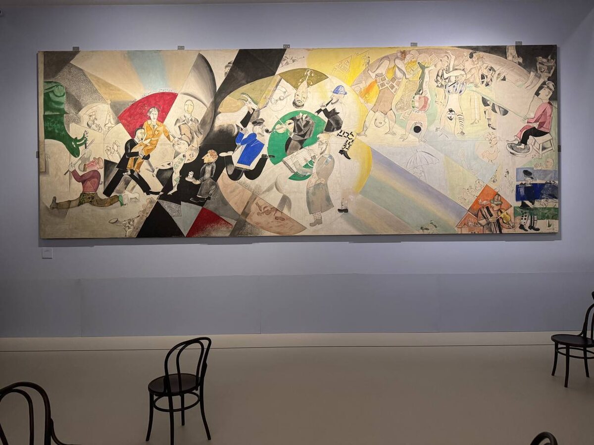 Радость земного притяжения» Масштабная выставка! Экспозиции подобного масштаба не было почти 40 лет — уникальный партнерский проект сразу нескольких музеев. Фактически представлен весь русский Шагал — до его отъезда. Для того, чтобы попасть на выставку, нужно в каком-то смысле воспарить, как герои многих шагаловских полотен, и подняться по мраморной лестнице словно в храм искусства, на фронтоне которого мы видим главный экспонат — картину «Прогулка» из собрания Русского музея. На время она переехала из Петербурга в Москву и «Над городом». ❤️Далее на миг, можно оказаться в родном — любимом Витебске — «Комната семьи Шагал» – воссозданный интерьер с подлинными предметами мебели из дома художника в Витебске. Эти экспонаты демонстрировались в России лишь однажды. 🎭 Реконструкция Еврейского камерного театра, для которого художник в 1920 расписал девять панно (сохранились семь) ➕ Впервые выставлен цикл рисунков на тему Первой мировой войны. Все экспонаты сопровождаются цитатами из авто