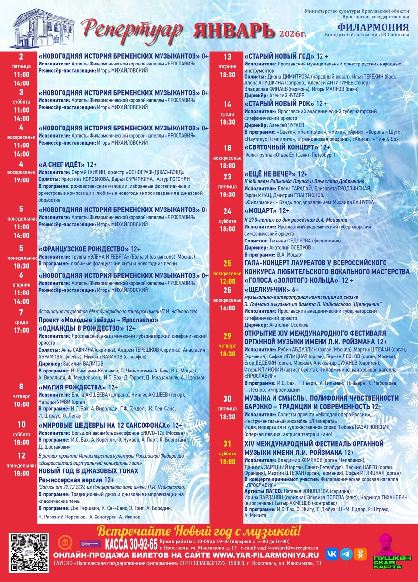🎄🎅 Как правильно и с пользой их провести? Приходите в филармонию всей семьей и с друзьями! А мы подготовили для вас разнообразный репертуар! https://yar-filarmoniya.ru/afisha/list.php