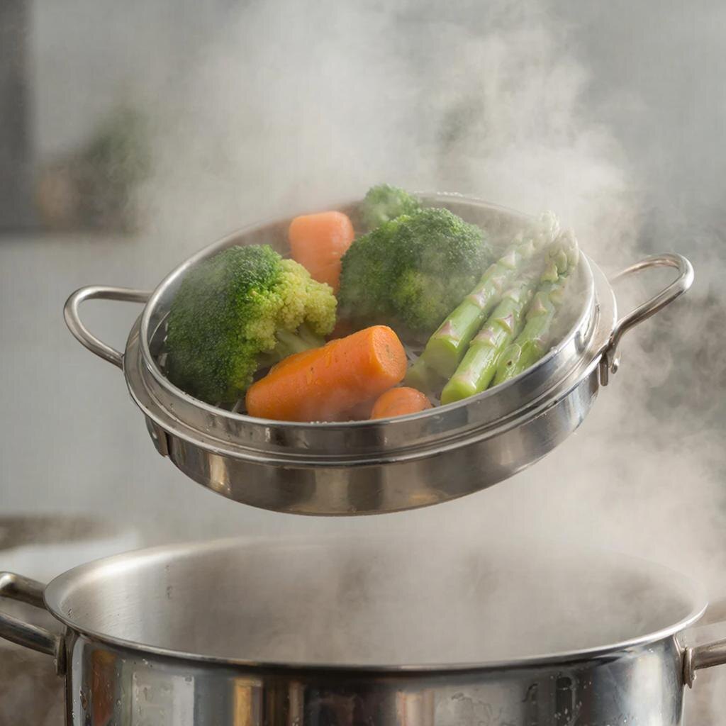 💡 Стикер-факт: "При варке в воду уходит до 40% витаминов. При готовке на пару — не более 10%."