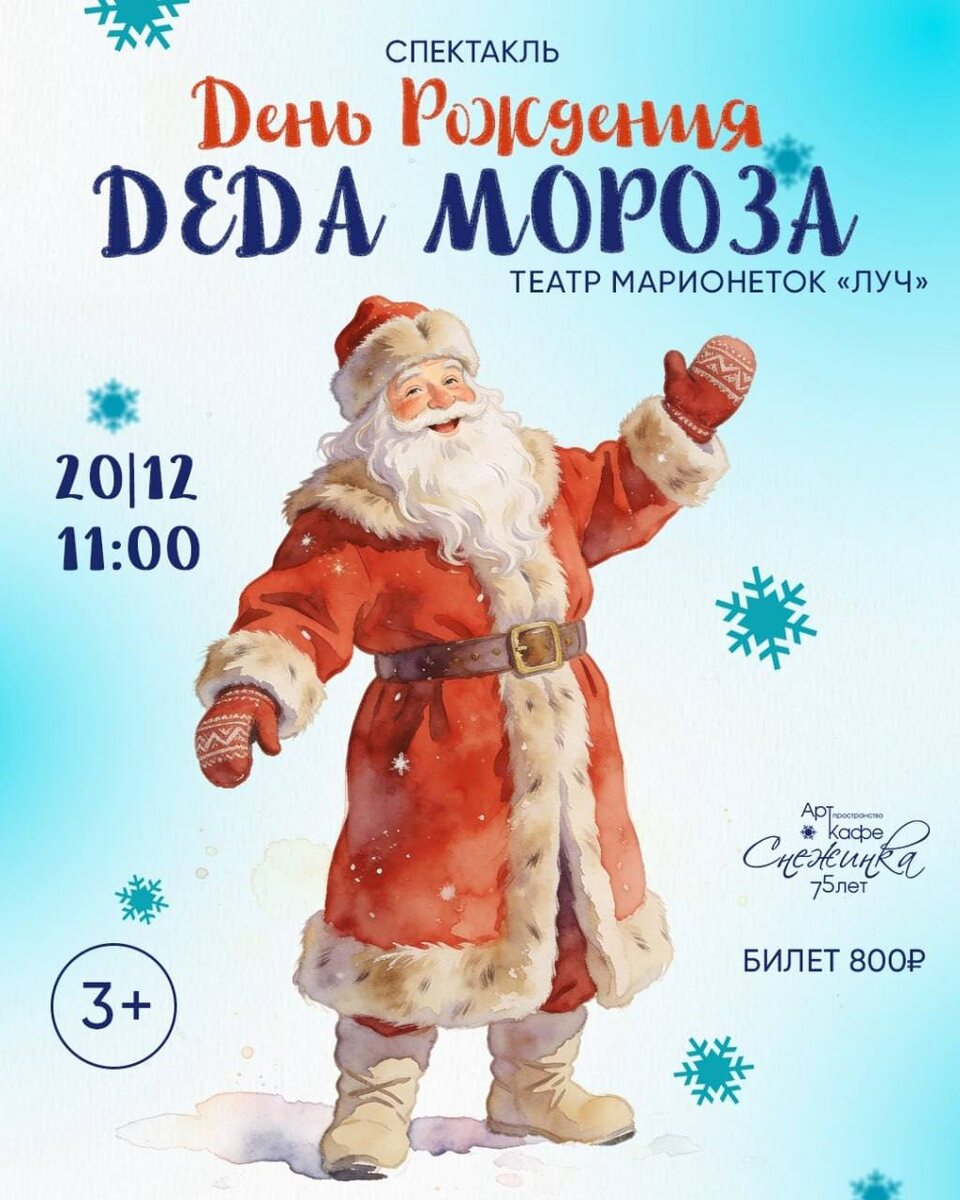 🎅 Сходим на спектакль «День Рождения Деда Мороза» В этот день мы будем праздновать день рождения Деда Мороза — и дети смогут: — познакомиться с ним лично — передать письмо с желаниями — стать участниками сказочного праздника вместе с героями спектакля 👉 Когда? 20 декабря в 11:00 👉 Где? Арт кафе «Снежинка» , театр марионеток «Луч» 👉 Стоимость: 800₽ 👉 Возрастные ограничения : 3+ ✨Давай сходим, Севастополь | Читайте и смотрите нас в МАХ