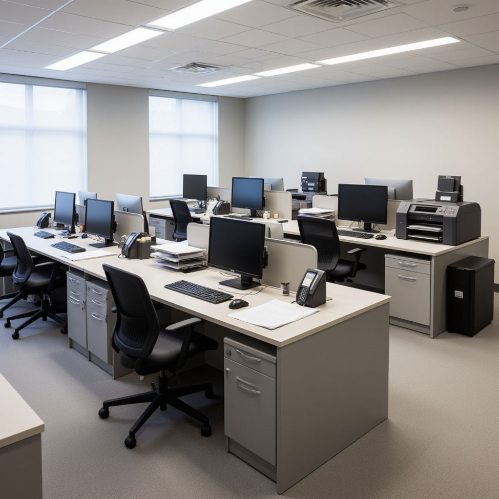 Всё помещение дышало деловым порядком и функциональностью, создавая атмосферу серьёзной работы, где каждый элемент находился на своём месте, готовый к использованию в любой момент.