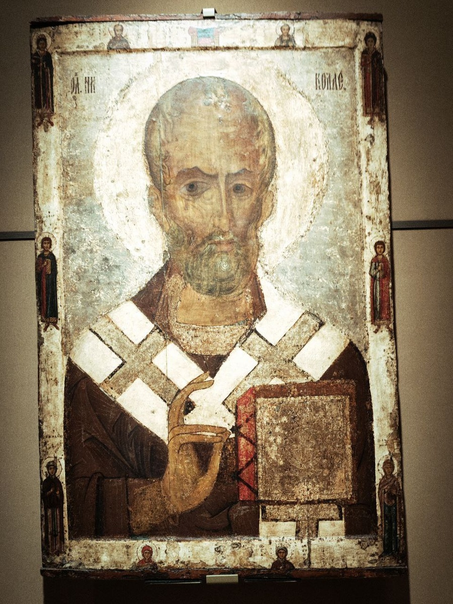 Это была сложная операция, пациентке удаляли злокачественную опухоль. И все вроде бы шло нормально. Опухоль удалили, все вокруг нее почистили, метастазов, к счастью, не было. И вдруг открылось кровотечение. Задели кровеносный сосуд. Хирург делал все, что мог.Но кровь не останавливалась. Напротив, все усиливалась и было невозможно определить источник кровотечения. И хирург, повидавший много на своем пусть и таком не большом, но суровом врачебном веку, послал за профессором , а сам крикнул: -Святитель Николай, помоги! Помоги же! Пока бегают за профессором, предлагаю посмотреть на древнюю икону Русская икона XIII века новгородского происхождения. Находится в собрании Государственного Русского музея. Из Духова монастыря. Запечатлела для вас в Третьяковской галерее На всю операционную крикнул. Хирурга в ту же секунду кто-то из сотрудников позвал. Он всего лишь на миг отвел глаза от раны, ответил. Потом снова глаза перевел на операционный стол, на свою пациентку, и обомлел. От кровотечени
