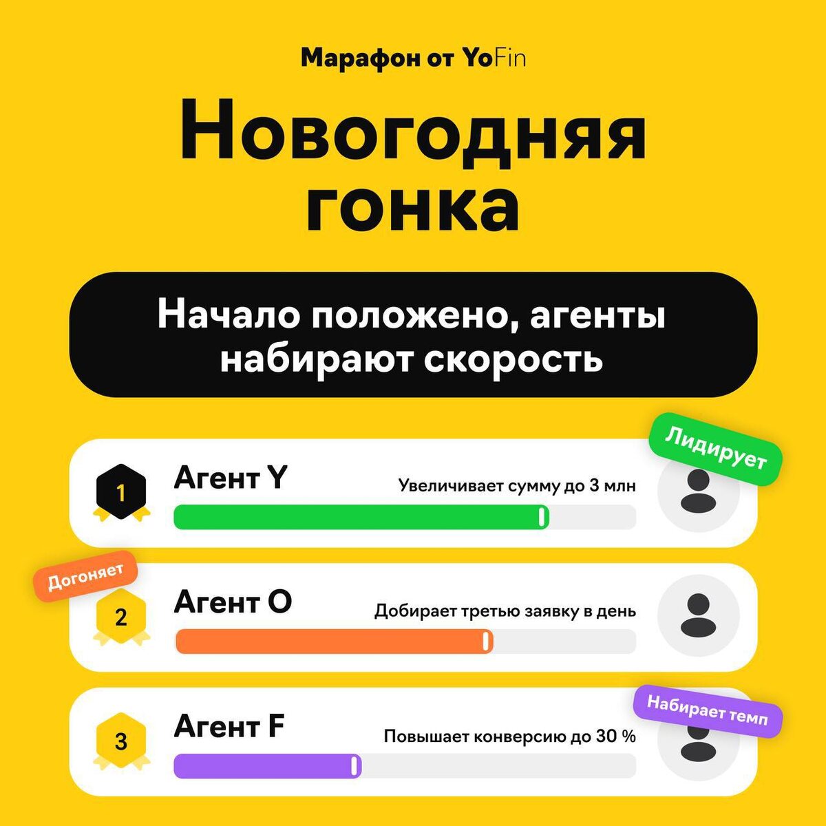 ❄️ Наши агенты по-настоящему включились в гонку за лучшими условиями — сейчас самое время заложить фундамент стабильного дохода и премиальных возможностей на весь следующий год! Уже сейчас партнеры используют наш главный бустер — Реалист Банк 🔷, который повышает КВ и дарит 1 день заморозки за каждую заявку. Напомним условия марафона: ✅ 3 заявки в день; ✅ На общую сумму от 3 млн; ✅ Конверсия от 30%. Всем участникам гонки дарим подписку YoFin Premium на 3 месяца с повышенным КВ до 5%. 🏆 Главный приз — Premium-статус на целый год, торжественное награждение 12 февраля на Премии «Банки Года» в ТПП РФ и сертификат на 150 000 рублей! 68 лидеров уже доказали свой премиальный статус. Присоединяйтесь! Ваш @yofin