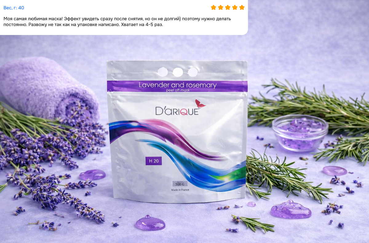 Альгинатная маска — это один из самых популярных форматов ухода, когда коже нужно быстрое увлажнение, восстановление и свежесть. Наши клиенты часто выбирают альгинатную увлажняющую маску Darique с лавандой и розмарином для домашней процедуры, сравнимой с салонным уходом. «Моя самая любимая маска! Эффект видно сразу после снятия, кожа становится увлажнённой и свежей, но он не долгий, поэтому нужно делать постоянно. Хватает на 4–5 раз».