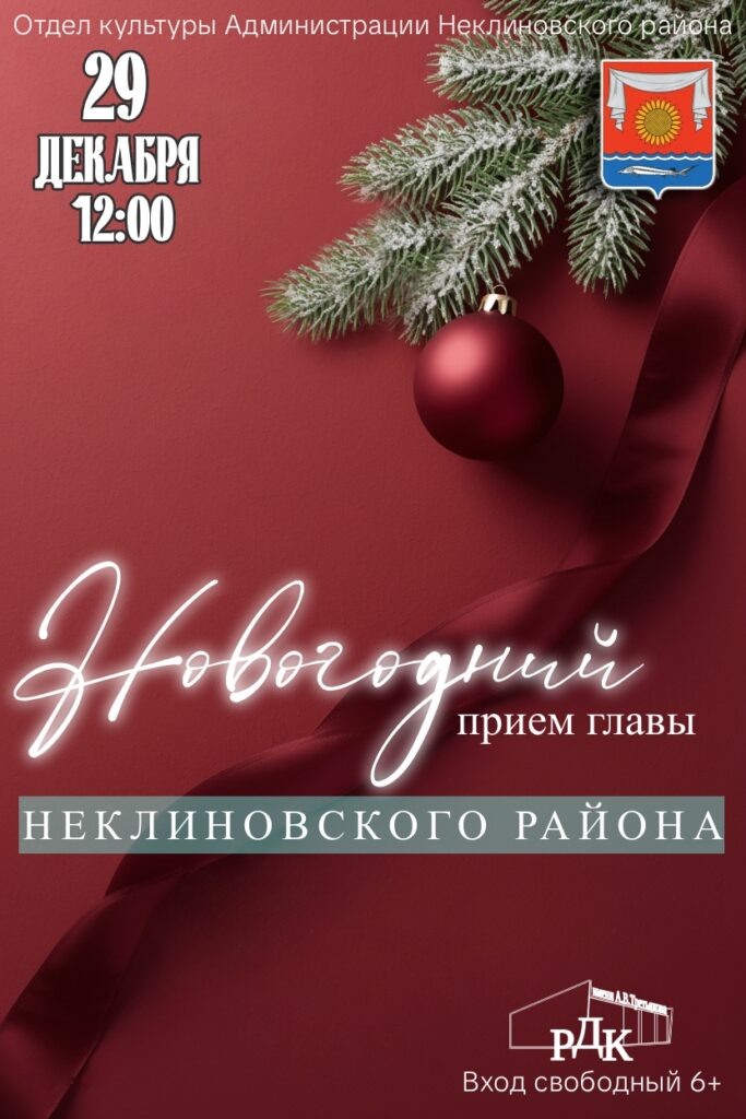Жителей Неклиновского района приглашают принять участие в ежегодном новогоднем приеме главы Неклиновского района, который состоится в РДК 29 декабря в 12.00. Вас ждёт тёплая атмосфера, новогодние поздравления, яркие эмоции и ощущение настоящего праздника. Это отличная возможность встретиться, пообщаться и зарядиться хорошим настроением перед Новым годом, — приглашает районный Дом культуры. Приходите 29 декабря в 12.00. с семьёй, друзьями и коллегами — будем рады каждому!