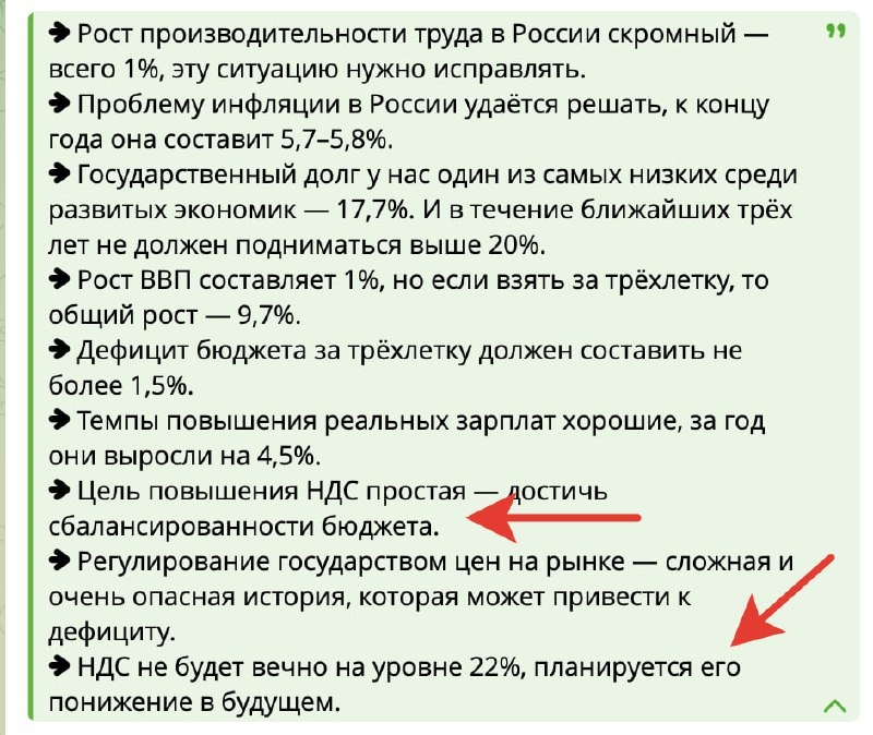Я не смог посмотреть полностью прямую линию с Президентом, но вот подсвечивают важное по экономике