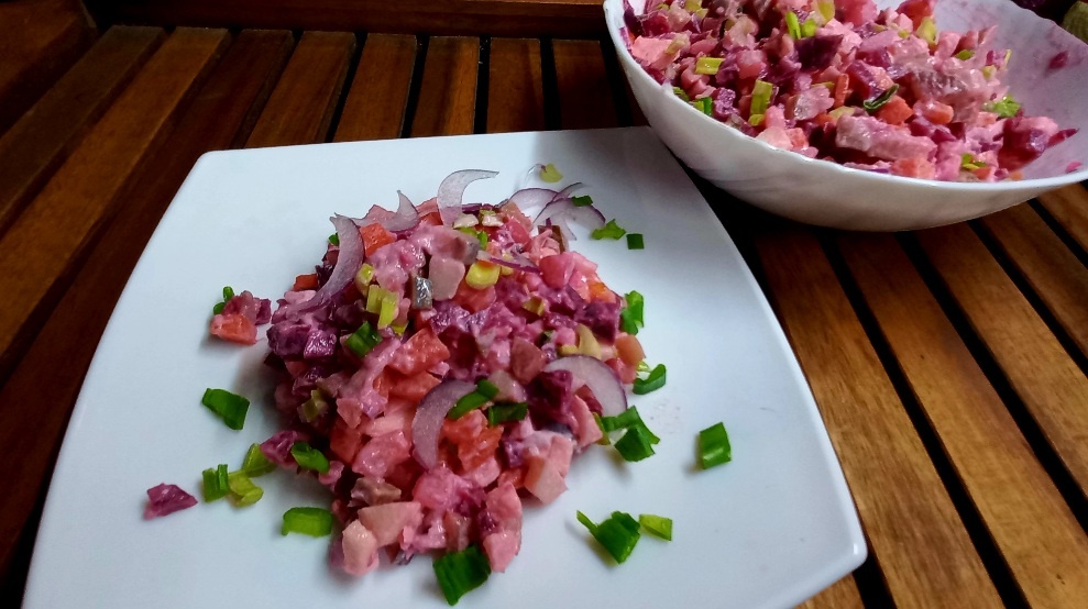 Считается, что этот салат - "Сельдь под шубой по- фински". Сейчас, правда, уже точно не узнаешь территориально - где чьё блюдо.