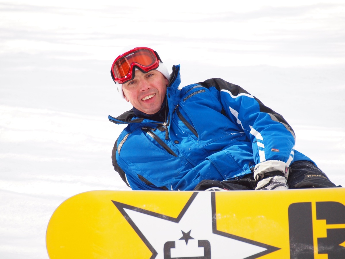 На сноуборд я встал буквально в 2010 году после того, как сын попросил. Я учил его с детства кататься на горных лыжах. Но в начале 2010-х годов стал модным сноубординг, все его друзья начали кататься на досках. Он сказал, что тоже хочет освоить его. Мы вместе взяли инструктора, попробовать. И вот в один из первых моментов инструктор нам говорит: «Для начала мы научимся с вами падать». На что я ответил: «Мы пришли сюда кататься, давайте мы будем учиться кататься, а не падать». Мы посмеялись, конечно, но падать научились. Потому что, правда, падать надо уметь. И вот таким образом, мы с сыном начали кататься. И, собственно, я параллельно с горными лыжами начал кататься на сноуборде. Сейчас активно катаю и на том, и на том.