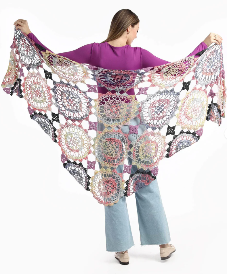 Шали с цветочными мотивами — это классика, которая никогда не выходит из моды. Ажурная шаль с цветочным узором становится идеальным выбором для тех, кто хочет создать нечто по-настоящему волшебное. Если вы уже давно держите спицы в руках и ищете амбициозный проект, эта статья поможет вам разобраться с техникой создания такого шедевра. На фото видна шаль Floral Fireworks (Цветочные фейерверки)— яркий пример того, как цветочный узор в вязании может трансформировать обычное изделие в произведение искусства. Рассмотрим подробнее, как её создать и на что обратить внимание. Вязание ажурной шали с мотивами — это техника, где готовое изделие состоит из отдельных элементов (мотивов), которые соединяются между собой специальным способом. Это не просто красиво, но и практично: вы можете работать над проектом этапами, не нося с собой килограмм пряжи. Шаль Floral Fireworks имеет впечатляющие размеры: размах крыльев 70 дюймов (178 см) и глубину 40 дюймов (102 см). Это большое, но лёгкое изделие