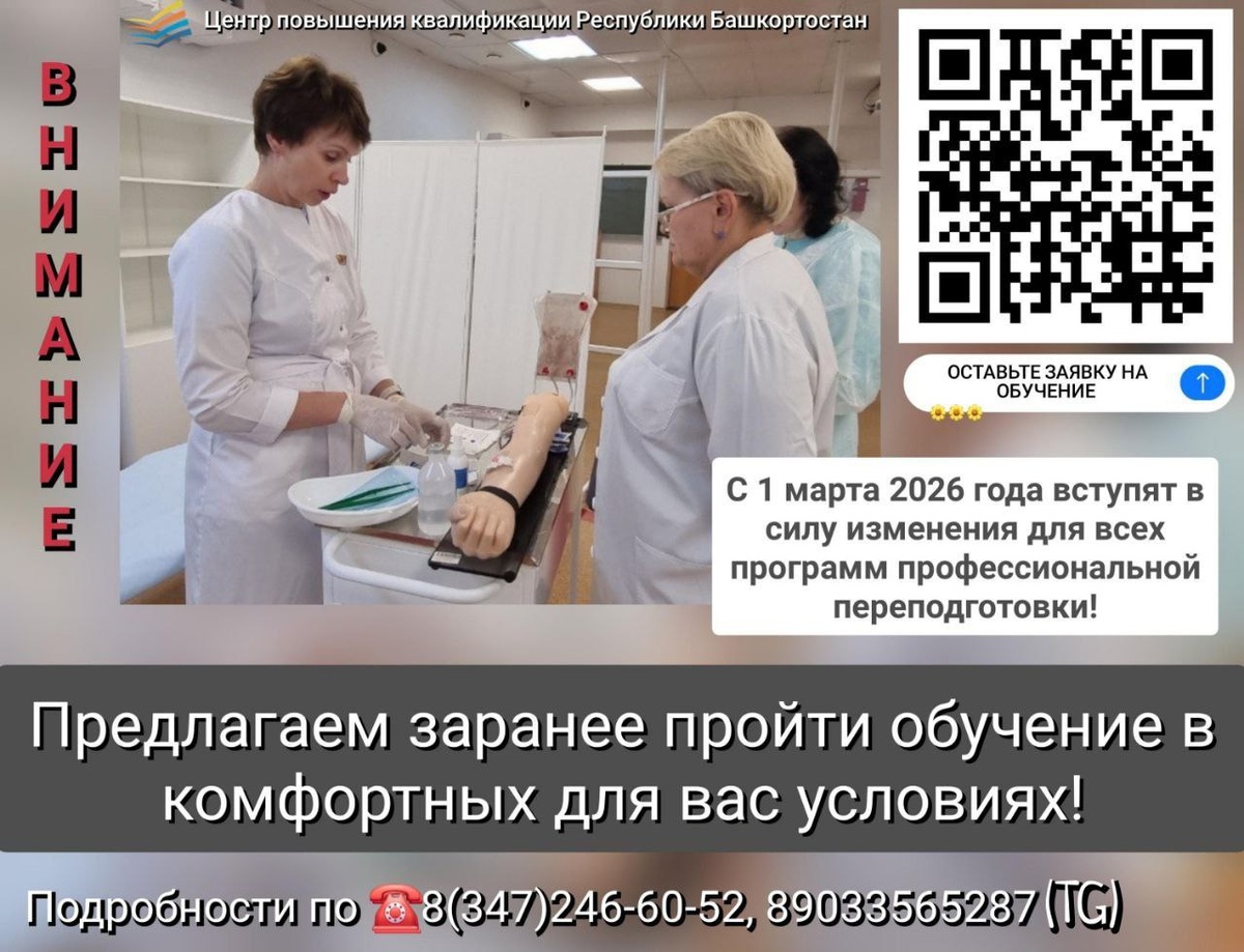 ⚠️Напоминаем, что с 1 марта 2026 года вступят в силу изменения для всех программ профессиональной переподготовки, включая медицинские и