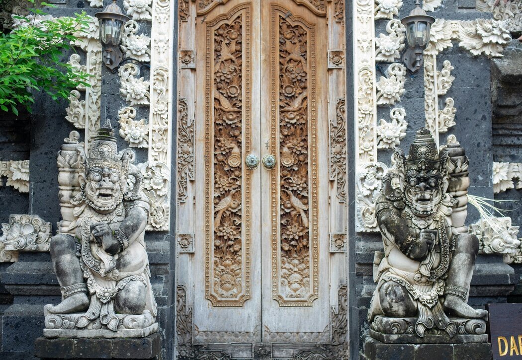 На Бали почти у каждого дома стоят скульптуры-стражи у ворот — мощные, мускулистые воины держат булаву или меч, сидят на пьедестале. Они защищают дом от негативных энергий, злых духов, несчастий, зависти, охраняют мир и порядок внутри семьи.