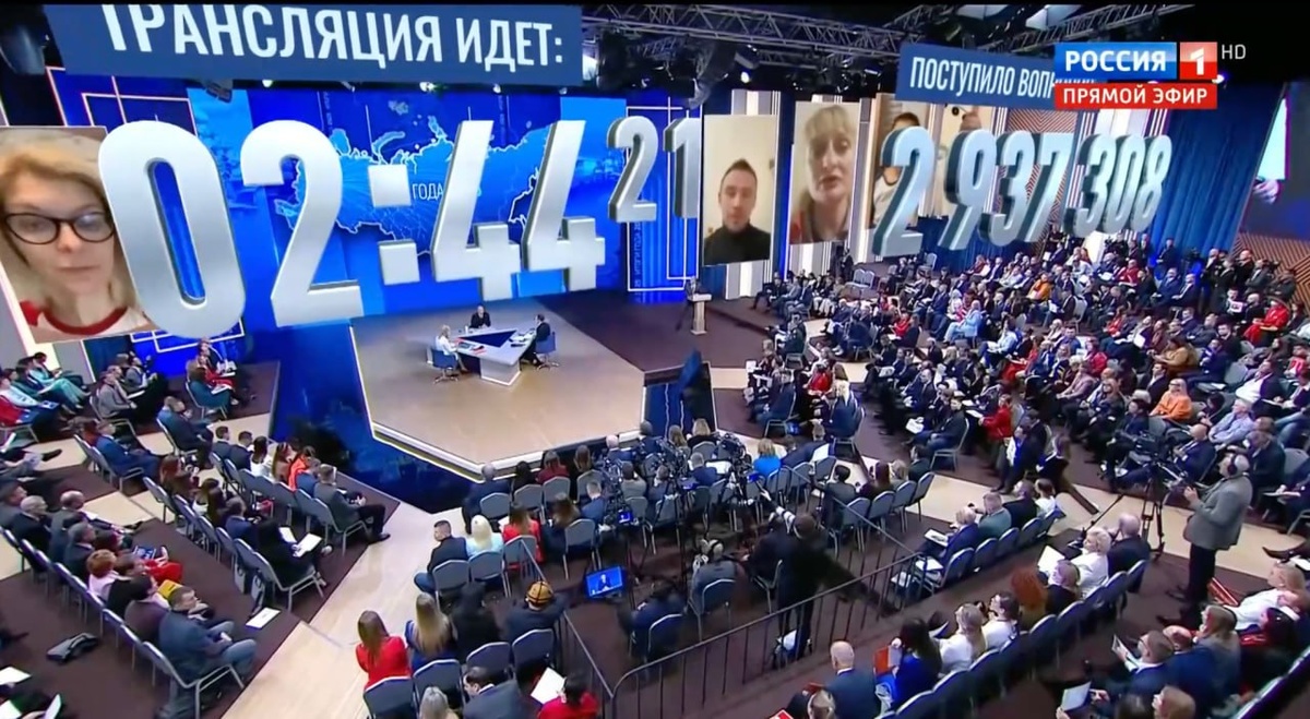 С момента приход Путина в зал прошло 2 часа 44 минуты. Количество обращений достигло почти 3 млн.