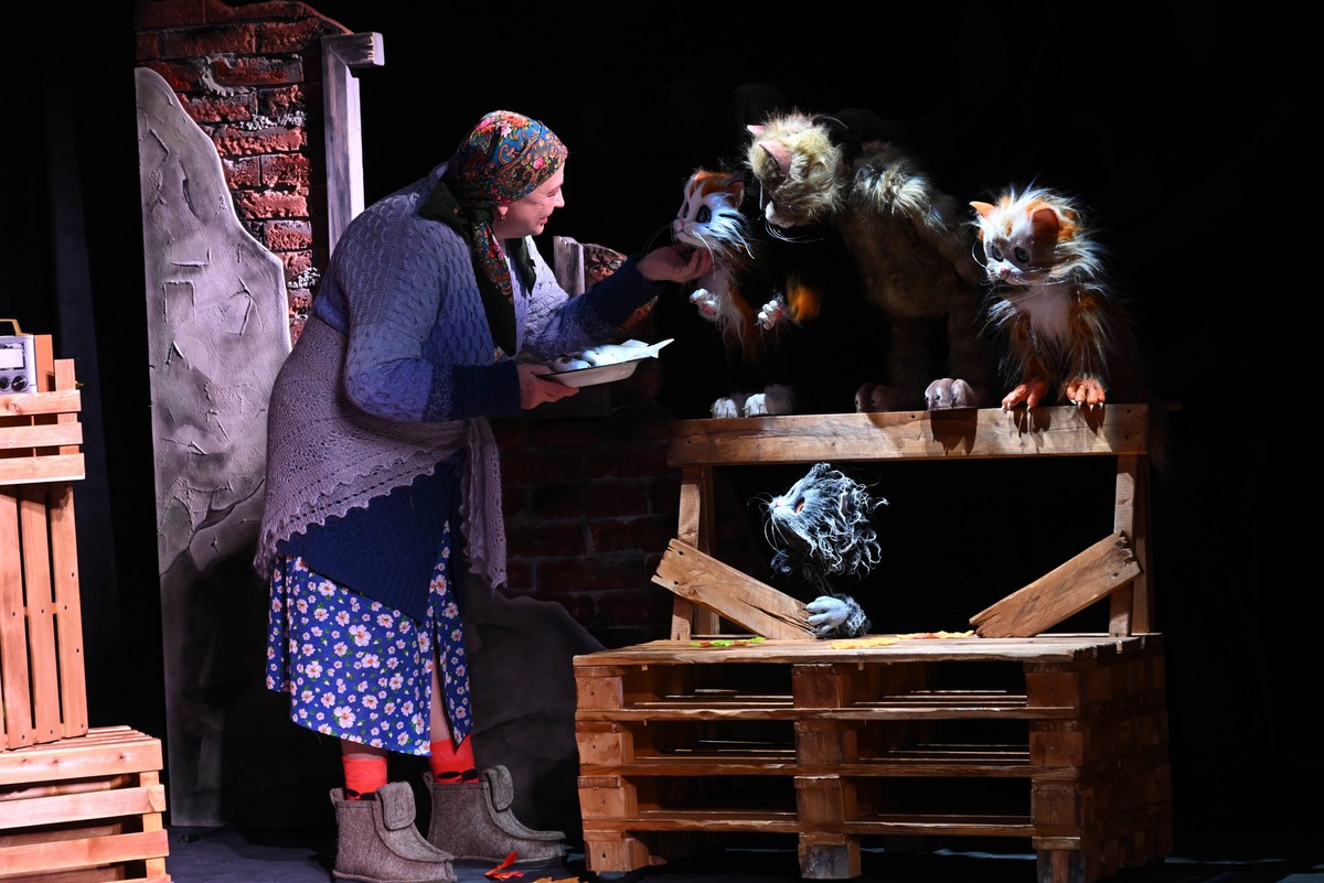 В Курском театре кукол представили новый спектакль Что делать, если предали самые близкие? Жить дальше и делать мир лучше. Так поступает главная героиня спектакля «Зимы не будет!» по одноименной пьесе Виктора Ольшанского. Пронзительная история в прочтении Валерия Бугаева – долгожданная премьера, которую с восторгом приняли первые зрители. Как и герою «Маленького принца», нам предстоит вспомнить: мы в ответе за тех, кого приручили. Этот спектакль прежде всего о нас, людях. Подзаголовок к названию – «ретро-сон» – указывает на то, что в нём переплетаются две параллельные реальности – мир, в котором мы живём, и тот, каким его видят наши меньшие братья. Здесь все слышат друг друга: коты, люди, деревья, машины. Главная героиня – тётя Паша (заслуженная артистка РФ Наталья Бугаева). У неё есть сын, но так случилось, что идти ей некуда. После ссоры с родными пожилая женщина живёт в заброшенном киоске. «Мы с сыном жить не хотим. Мы обиделись!», – поясняет верный кот тёти Паши. Их, впрочем, на по
