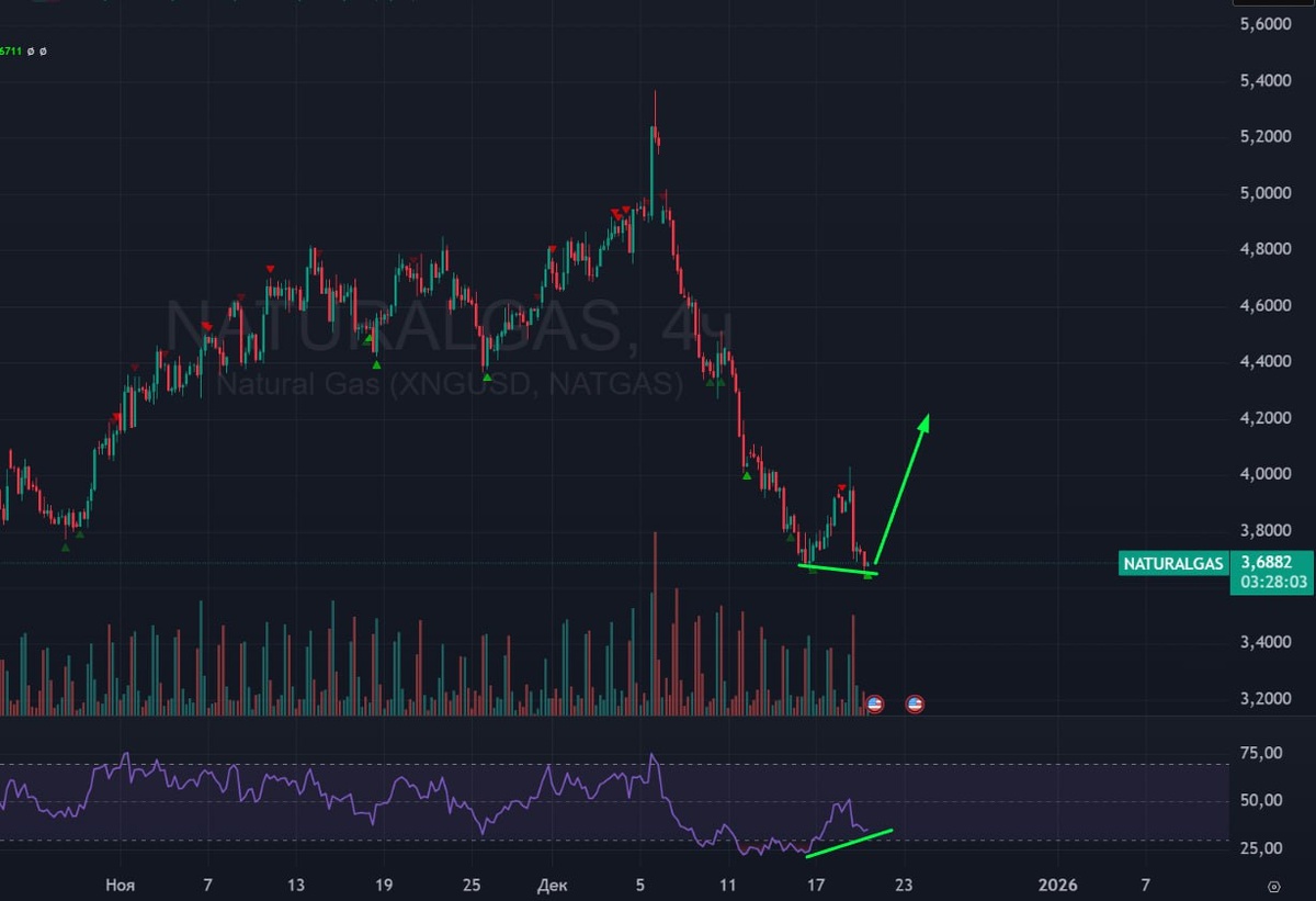 ⛽️ ГАЗ 🟢Я всё еще оптимистично настроен по газу. Считаю, что минимальные цели отскока не были достигнуты, а это значит, что их еще должны выполнить. Высота отскока не известна, но я ориентироваться буду на кластеры объемов из прошлого поста. 🟢 Теперь в газе есть шанс на формацию двойного дна + конвергенция. 🚗 Жду газ вверх! #газ #ng1 #американскийгаз #фьючерсгаза #naturalgas #bogdanoffinvest $NGF6