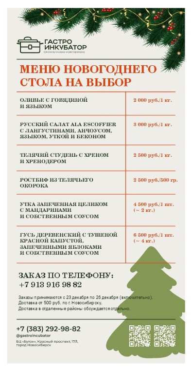🎄 Открыт предзаказ на праздничное новогоднее меню! ✨ Выбирайте блюда на корпоративы или домашнего стола, создавайте настроение, а мы позаботимся о вкусе. Заказ по телефону: +7 913 916 98 82 ⏰ Заявки принимаются до 29.12.2025 🎁 Финальный день выдачи заказов — 30.12.2025